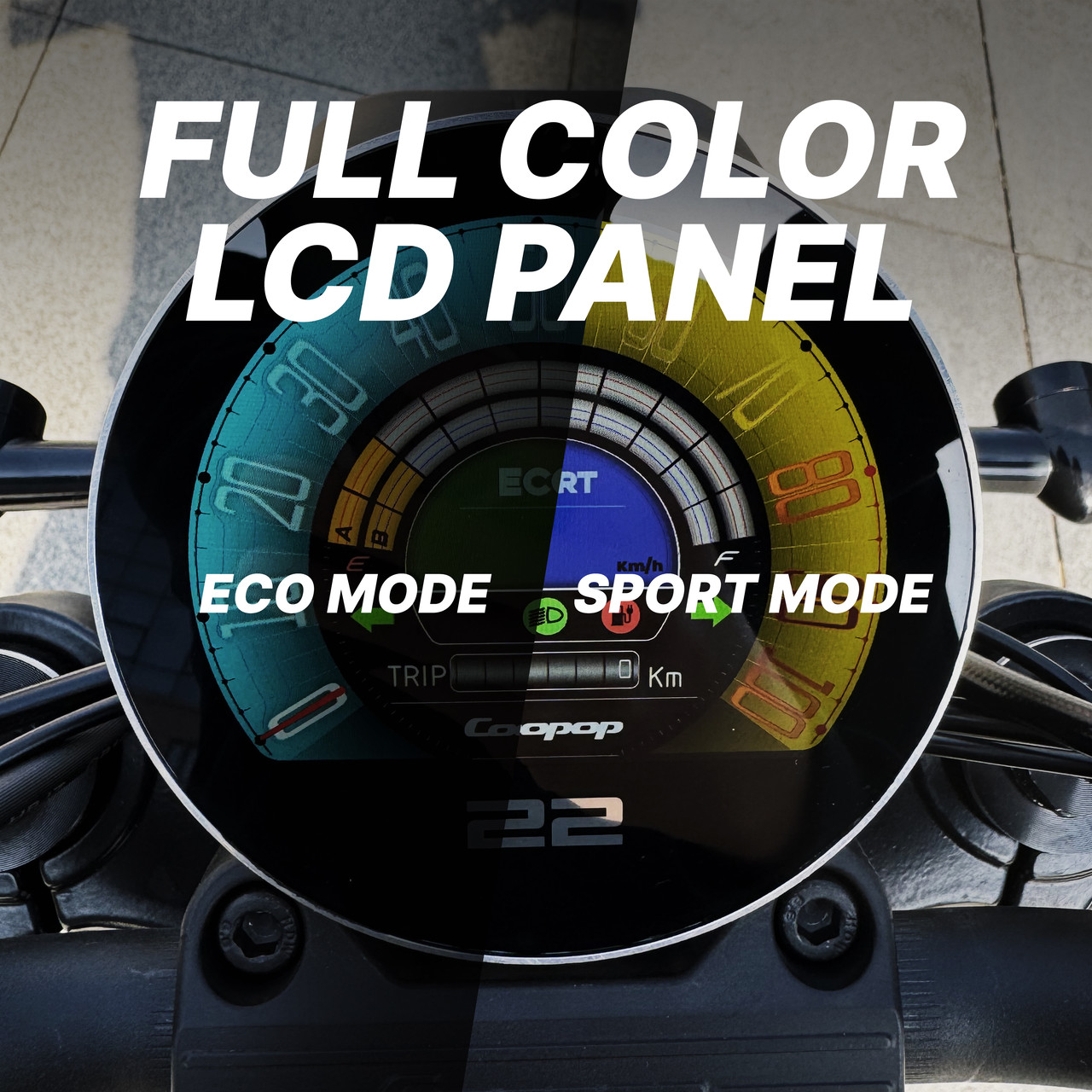 풀 컬러 디지털 계기판은 속도, 배터리 잔량, 주행 모드 등 핵심 정보를 직관적으로 표시해 한눈에 확인할 수 있습니다. 선명한 그래픽과 현대적인 인터페이스로 주행 편의성을 높이고, 스마트한 감각의 라이딩 경험을 제공합니다.