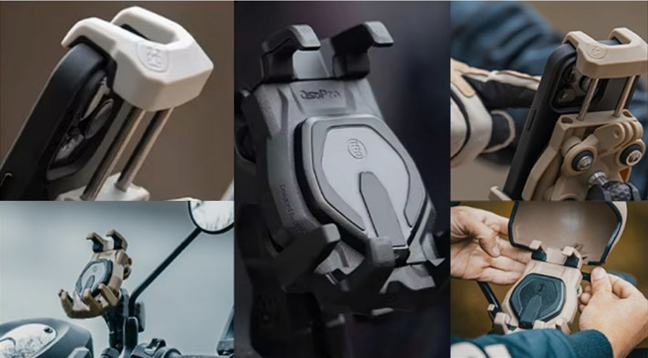 오토바이 운전자가 핸드폰을 안전하게 고정시키고, 운전 중에도 핸드폰의 화면을 쉽게 볼 수 있도록 설계된 액세서리.